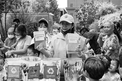 志愿者在社區(qū)為居民普及日常安全和應(yīng)急知識(shí)。