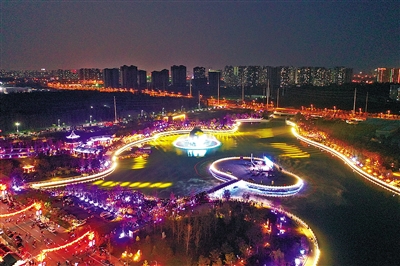 御龍河公園包括生態(tài)景觀區(qū)、娛樂休閑區(qū)、文化景觀區(qū)、濱水游樂區(qū),是南城環(huán)境修復與城市特色相融合的標志性景區(qū)。7月18日,御龍河公園正式開園。圖為俯瞰御龍河公園?!独确蝗請蟆酚浾?賈珺 攝