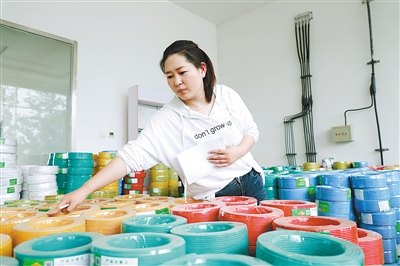 圖為河北盛安線纜有限公司的工作人員正在對(duì)家裝電線進(jìn)行清數(shù)。